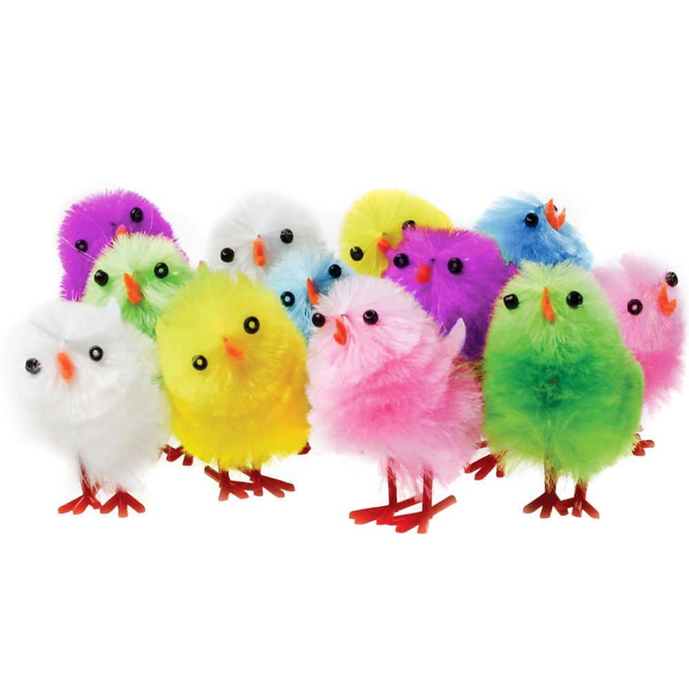 Assorted coloured chickens. Each chick measures 4cm tall. Colours and sizes may vary.