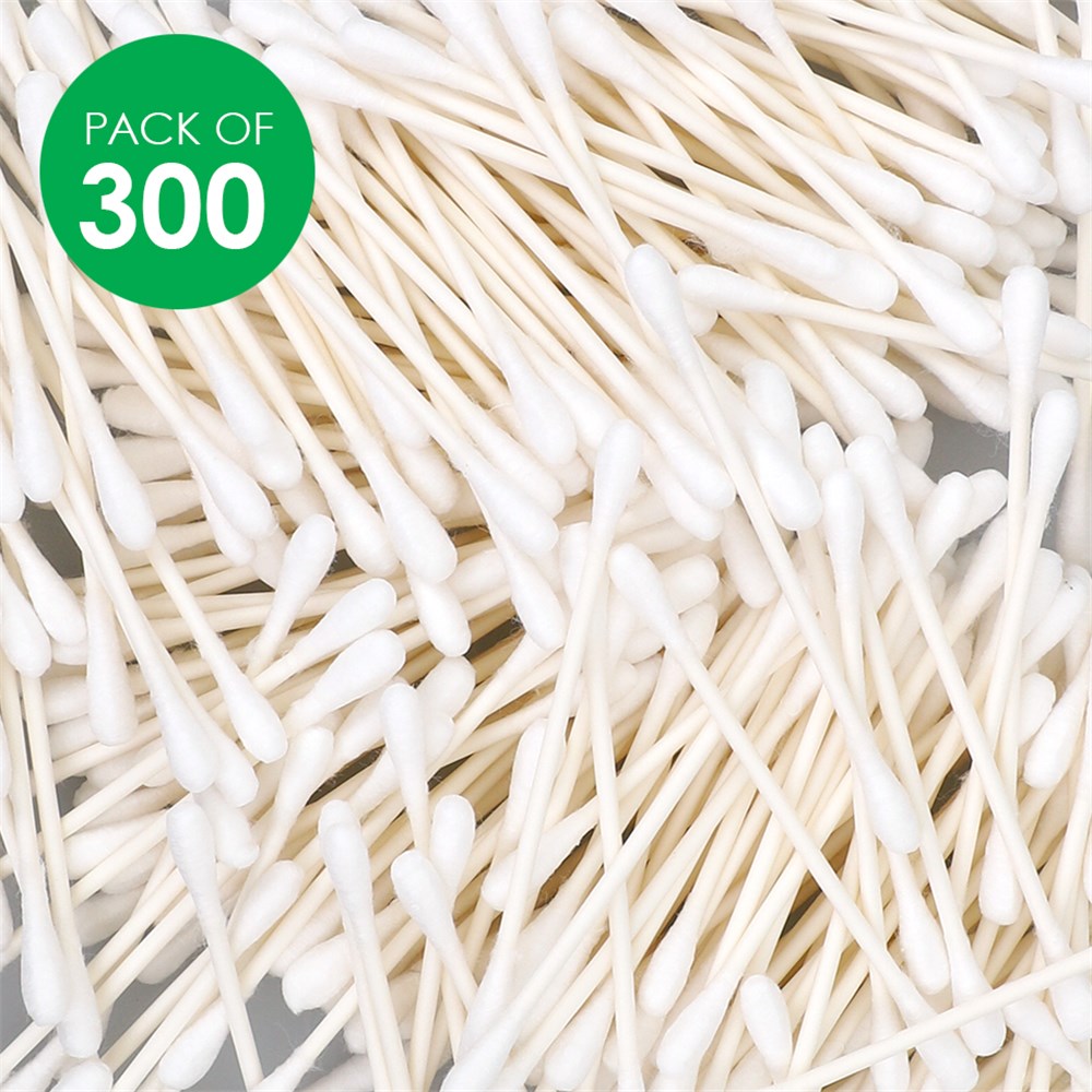 Cotton tips with paper stem. Double tipped applicators. Measures 7.7cm long.