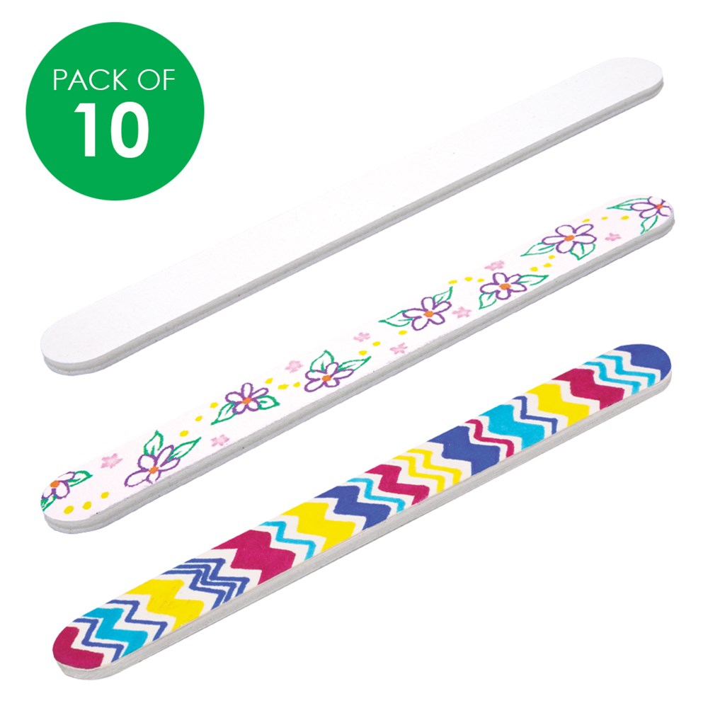 Nail file measures 18 x 2 x 0.4cm with plain white paper on one side for you to decorate using CleverPatch Triangular Coloured Markers or Permanent Markers (sold separately).