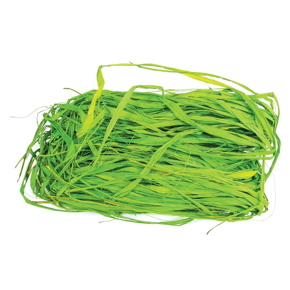 Lime coloured natural raffia. Long fibres created from Madagascan bark, dyed in vibrant colours. Perfect for adding depth and flair to your gift wrapping and craft activities. 25g.
