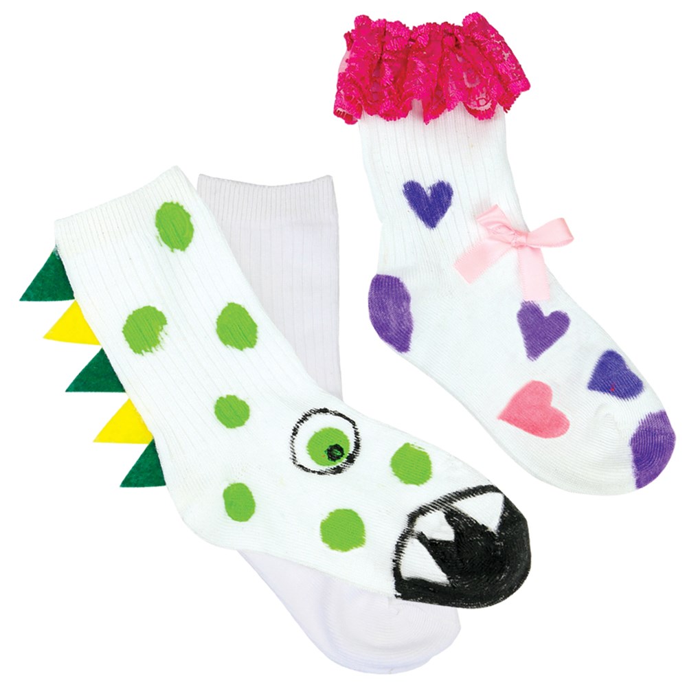 Create and decorate your very own sock puppets and creatures! Decorate with our CleverPatch Fabric Markers and craft accessories to bring life to your puppets and creatures. 10 pairs of white socks. Plain for you to create. Each sock measures 21 x 7cm.