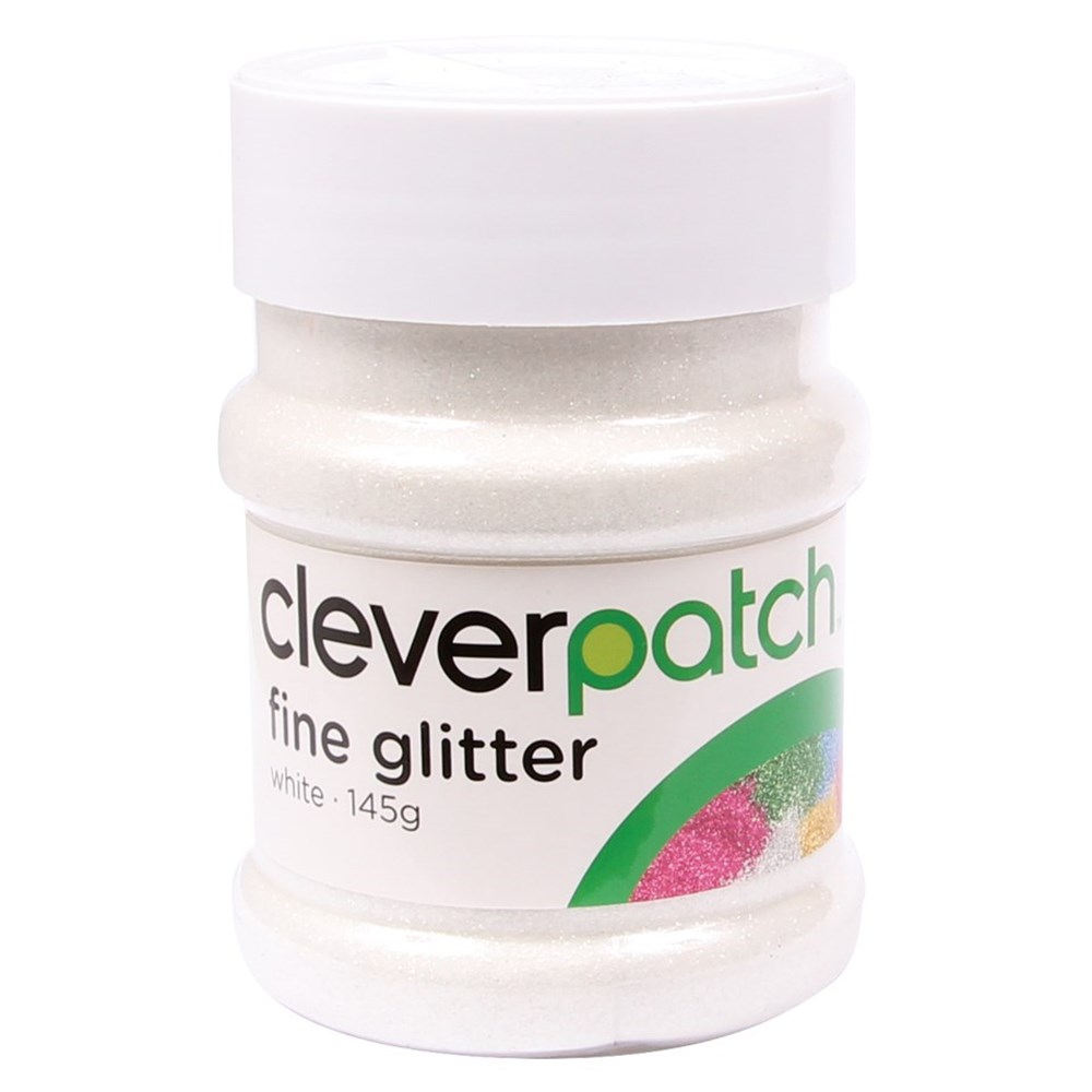 CleverPatch fine white glitter is like fairy dust! Great for adding some sparkle to any craft project. Supplied in a handy easy pour shaker tub. Tubs may vary.