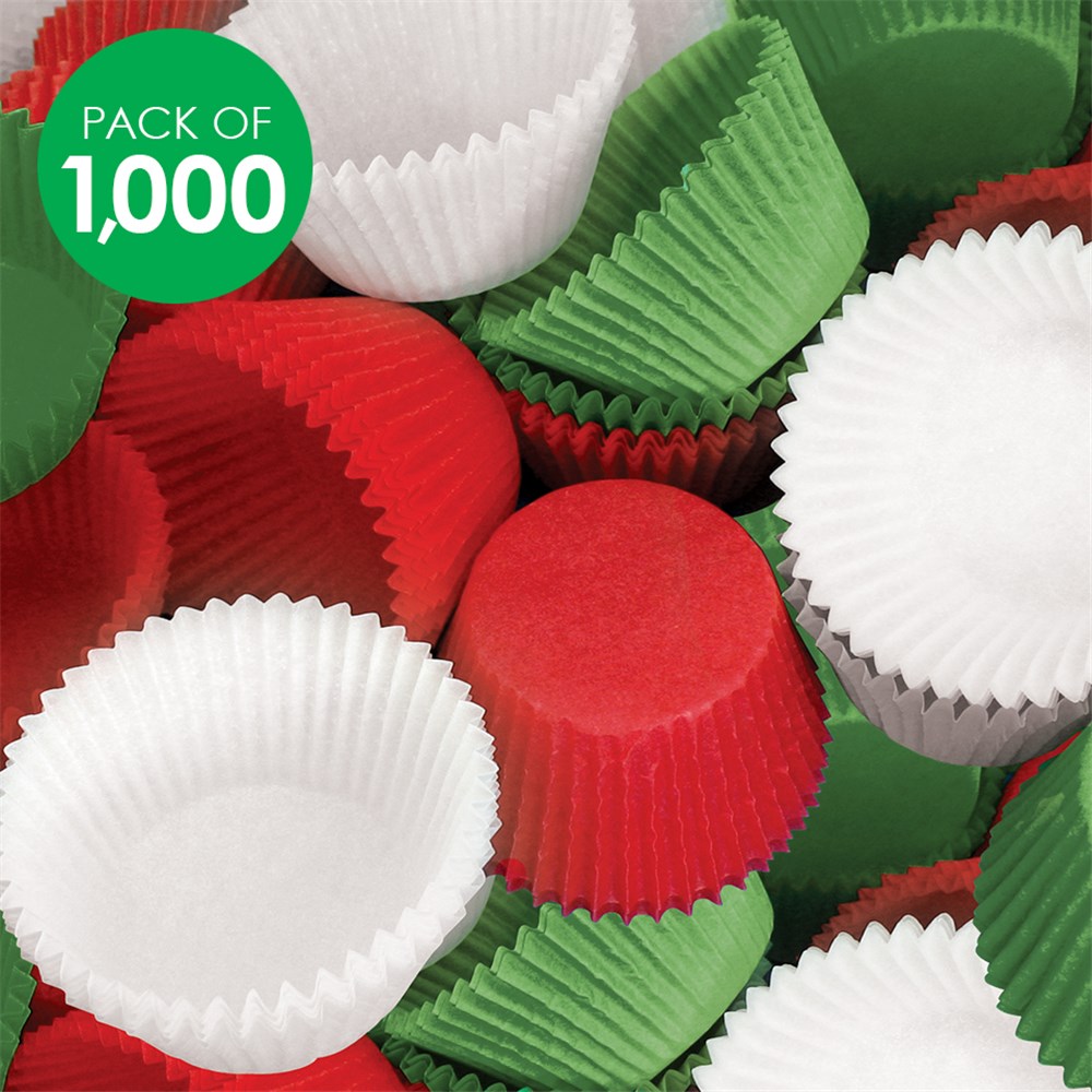 Patty pans in assorted Christmas colours. Base measures approximately 2.5cm in diameter.
