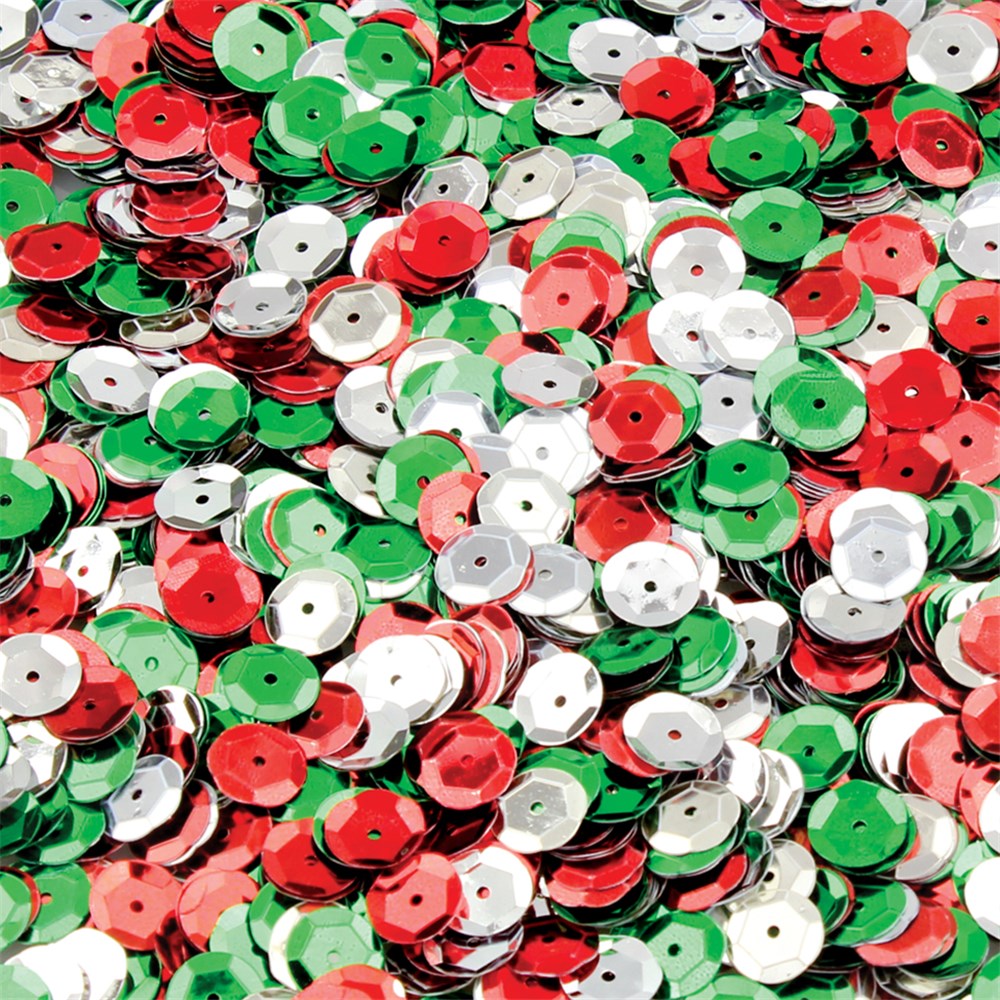 Over 1,700 cup sequins in assorted Christmas colours. Each sequin measures 1cm in diameter.
