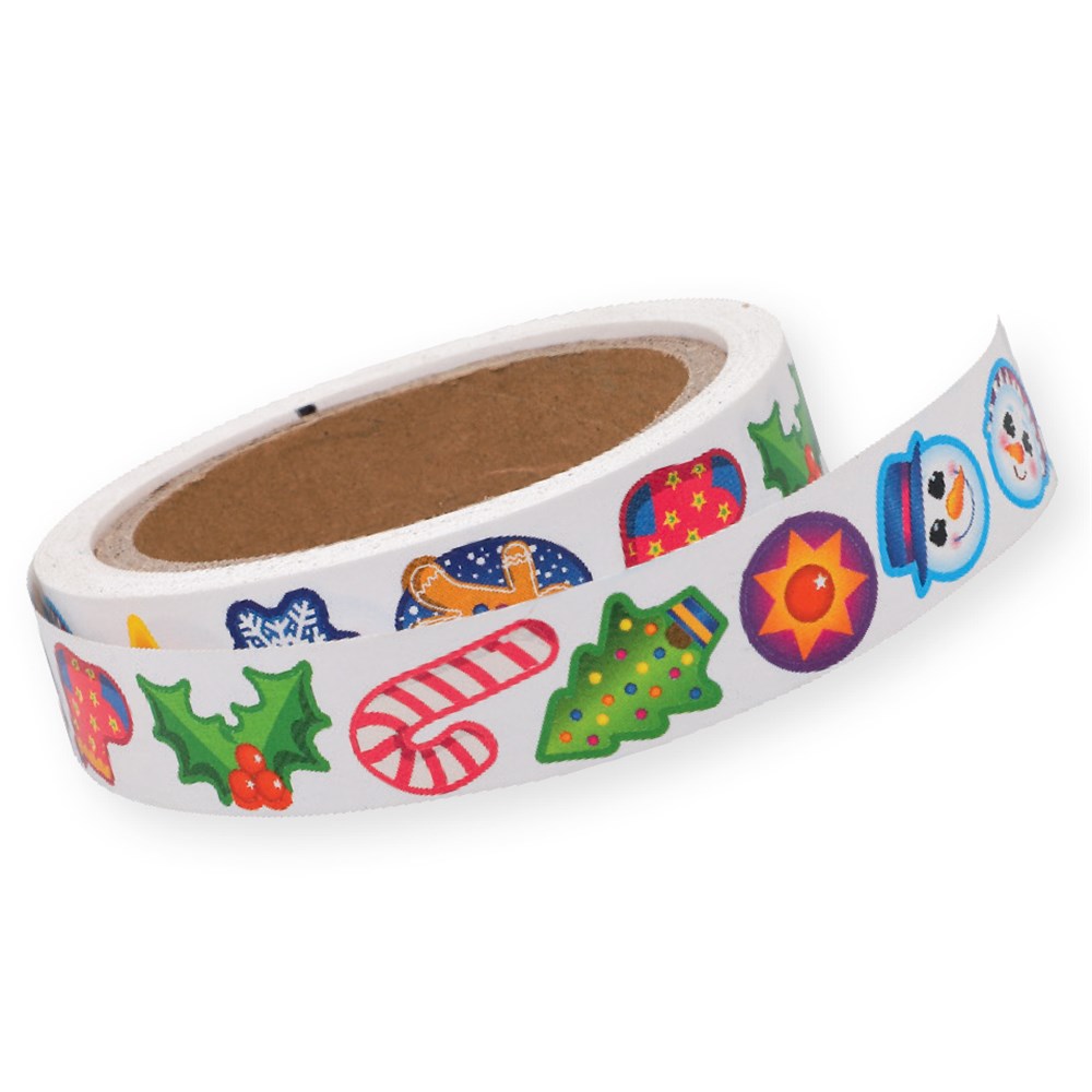 Christmas themed stickers provided in roll form. Includes 720 stickers and 30 bonus bauble gift tags. Stickers come in 10 assorted colourful designs and largest measures 2.7 x 1.7cm.
