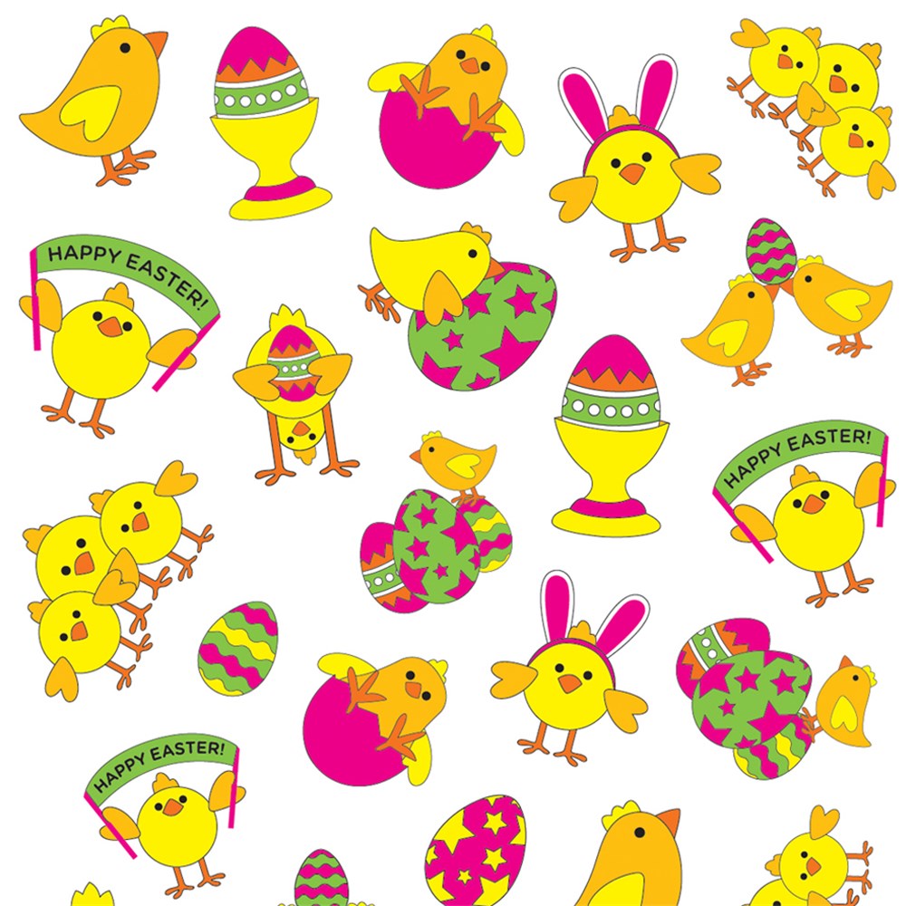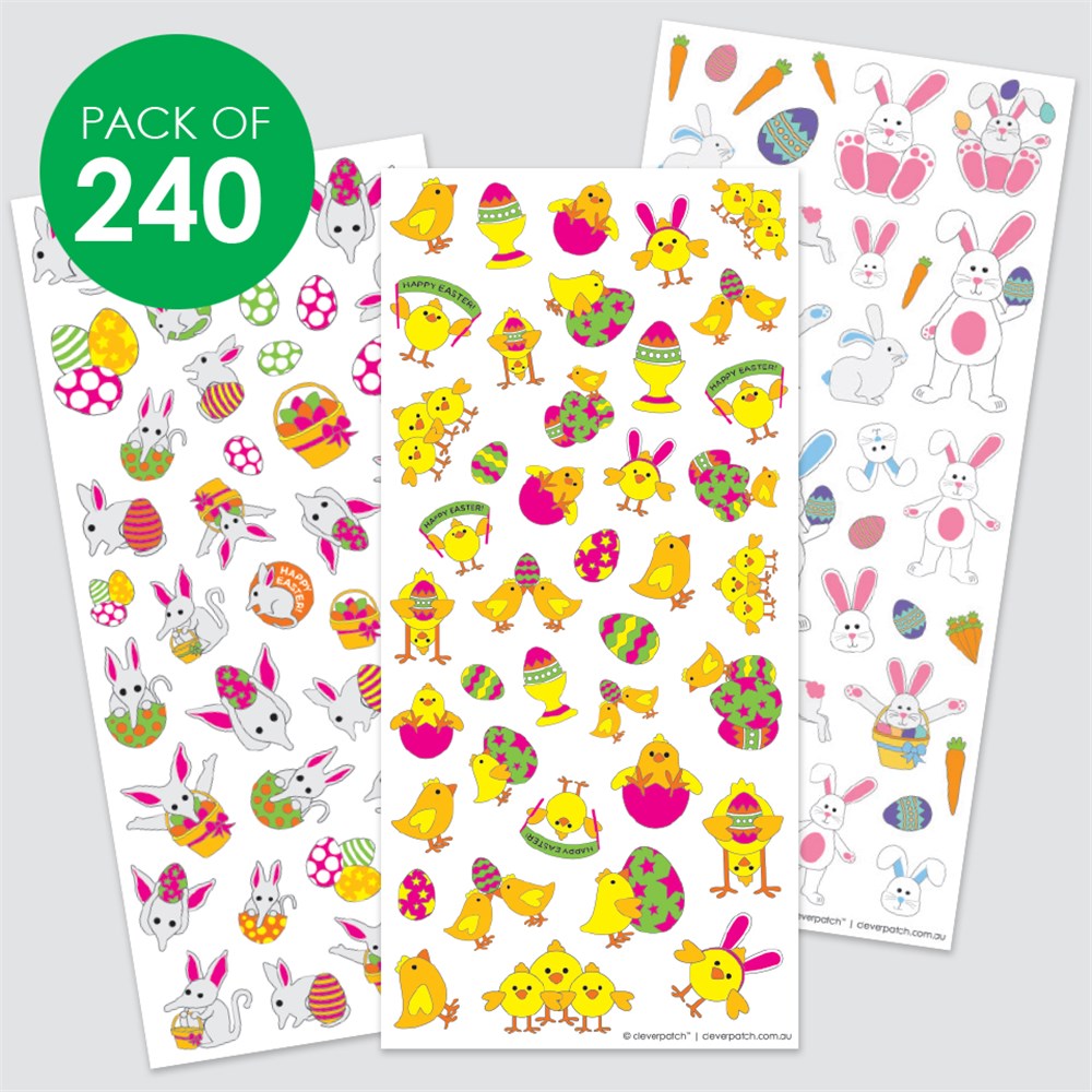 Stickers in assorted Easter designs. Includes 6 sheets of stickers. Largest sticker measures approximately 2.5 x 5cm.