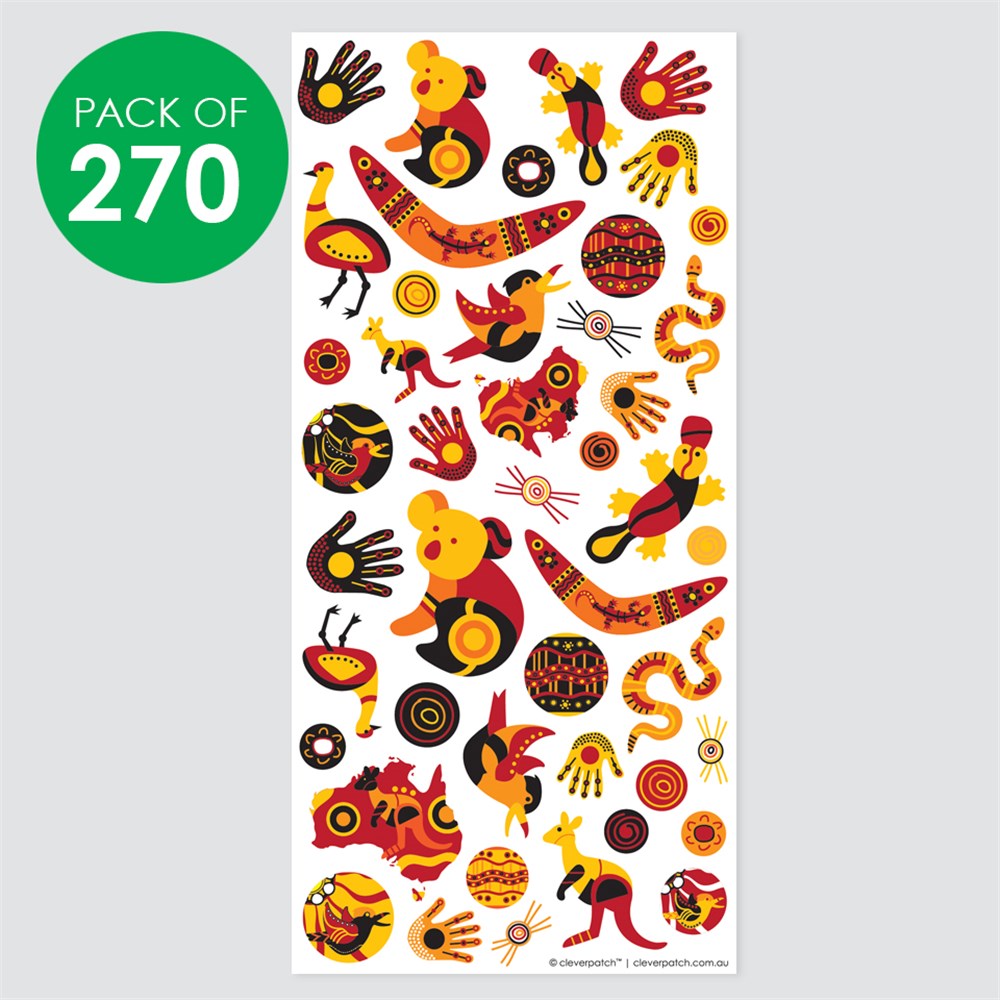Assorted Indigenous inspired designs. Includes 6 sheets of stickers. Largest sticker measures approximately 4 x 3cm.