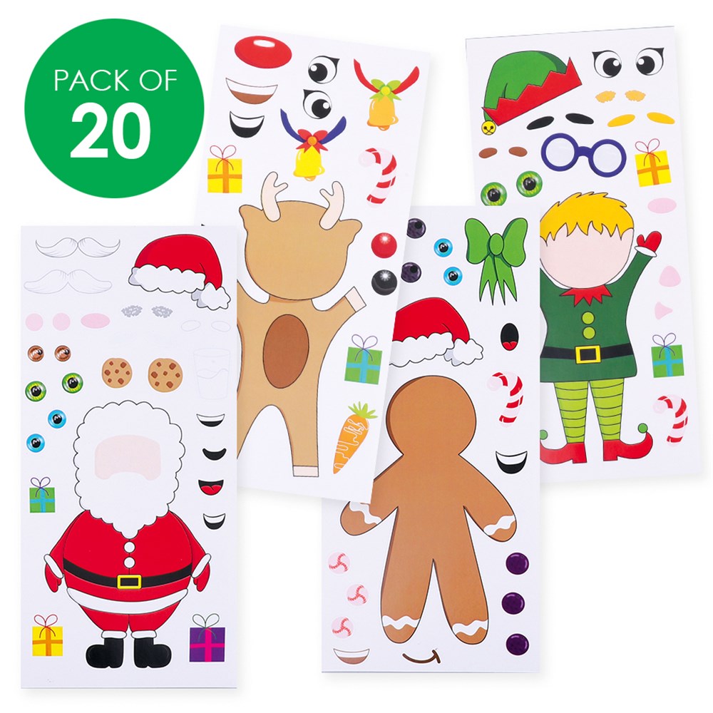 Each pack includes components to create 20 Christmas Characters across 20 sticker sheets. Includes 4 assorted sheet designs - Reindeer, Santa, Elf and Gingerbread Person. Reindeer measures approximately 7.5 x 14cm.