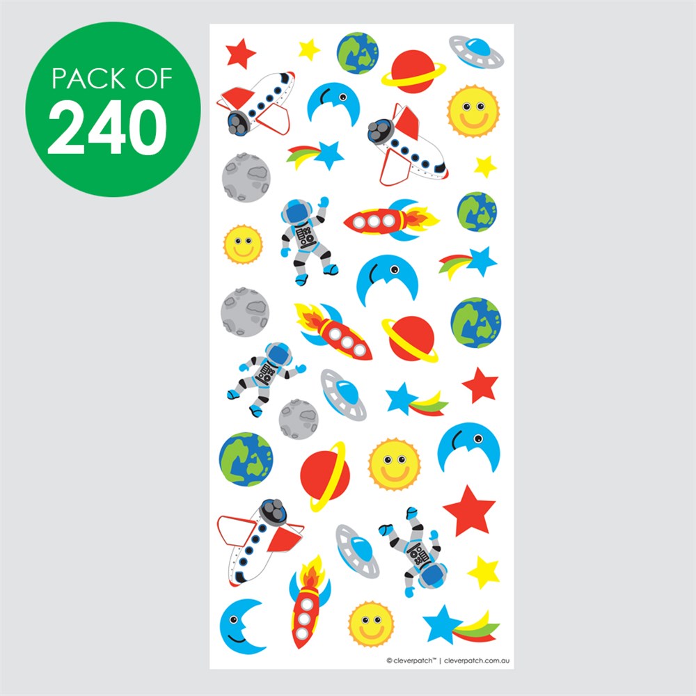 Stickers in assorted space designs. Includes 6 sheets of stickers. Largest sticker measures approximately 3.5 x 3cm.