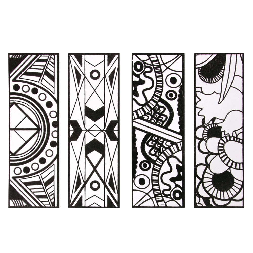 4 assorted designs. Plain for you to create. Thick card with black velvet flocking. Measures 5 x 15cm. Decorate with our CleverPatch Triangular Coloured Markers.