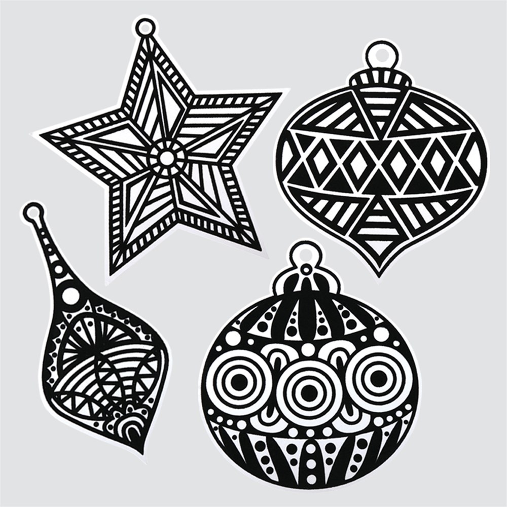 4 assorted designs. Plain for you to create. Thick card with black velvet flocking. Star ornament measures approximately 18 x 18cm. Decorate with our
