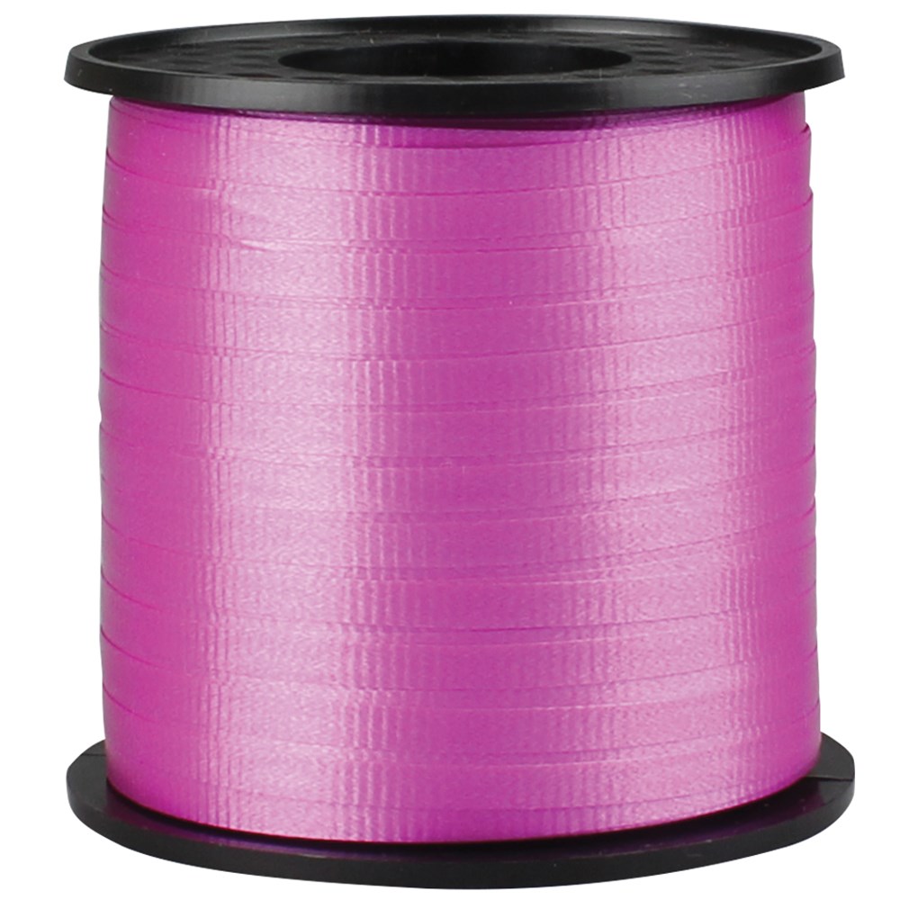 Pink curling ribbon measuring 5mm x 460m. Simply use a scissor blade to curl. Adult supervision recommended.