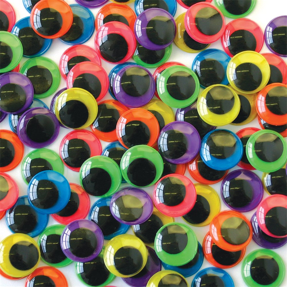 100 Wiggle Eyes in assorted colours. Each eye measures 1.5cm in diameter. Colours will vary.