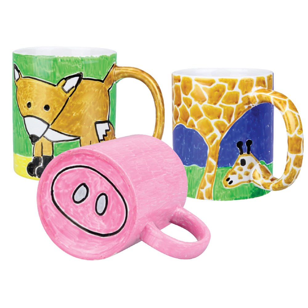 Glazed porcelain mug that comes plain for you to create. Decorate with our high quality CleverPatch Glass and Porcelain Markers. Measures 9.5 x 8cm not including handle. Supplied in an individual box, perfect for gifting and safe handling.