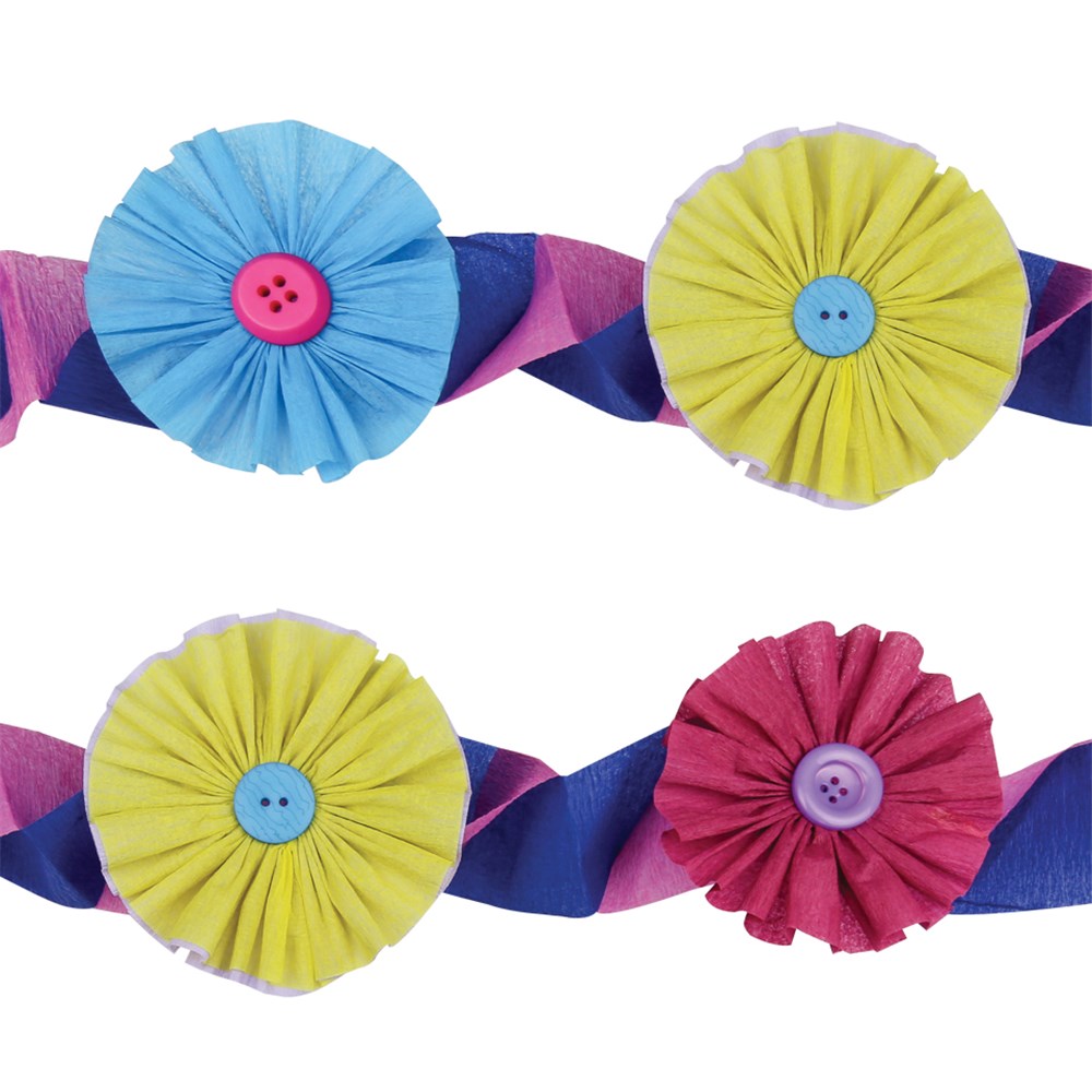 Yellow crepe paper streamer measuring 4.5cm wide and 24m long. 18gsm. Colour may vary.