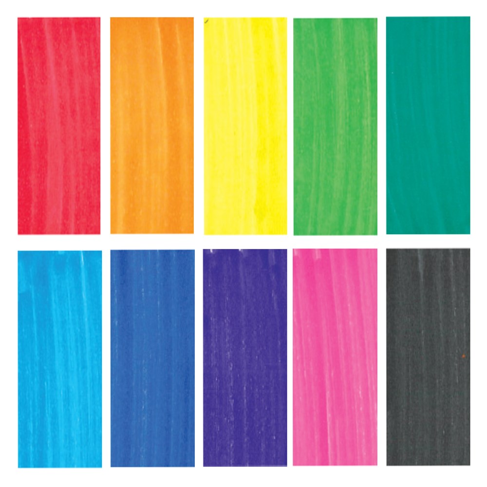 Bright coloured permanent markers in 10 assorted colours.