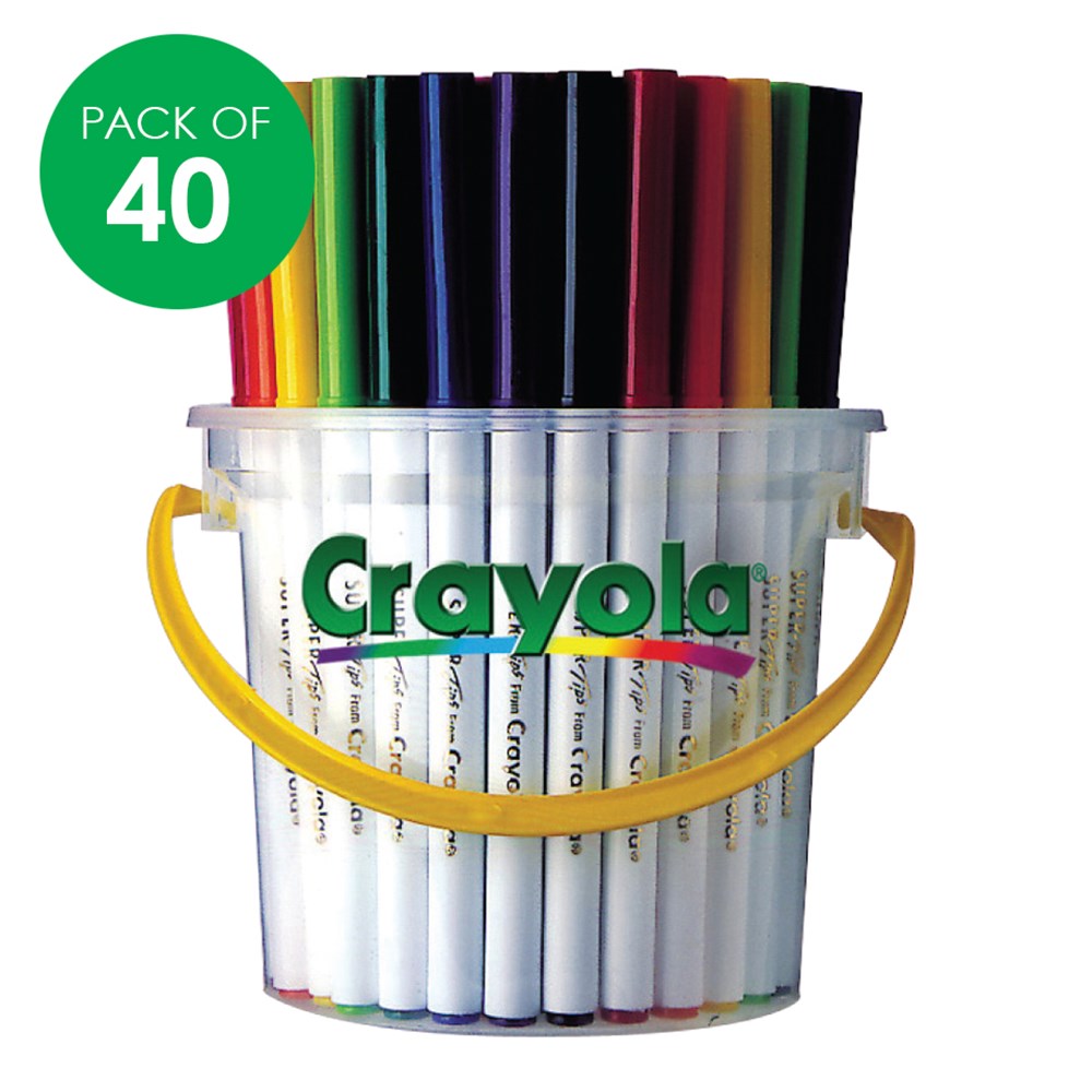 Deskpack of 40 Crayola washable SuperTips markers in 10 assorted colours.