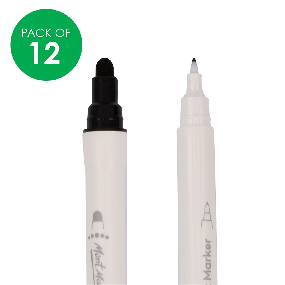 Dual tip markers including a 5mm round tip and 0.4mm fineliner tip. Measures 17 x 1.2cm. Non-toxic.
