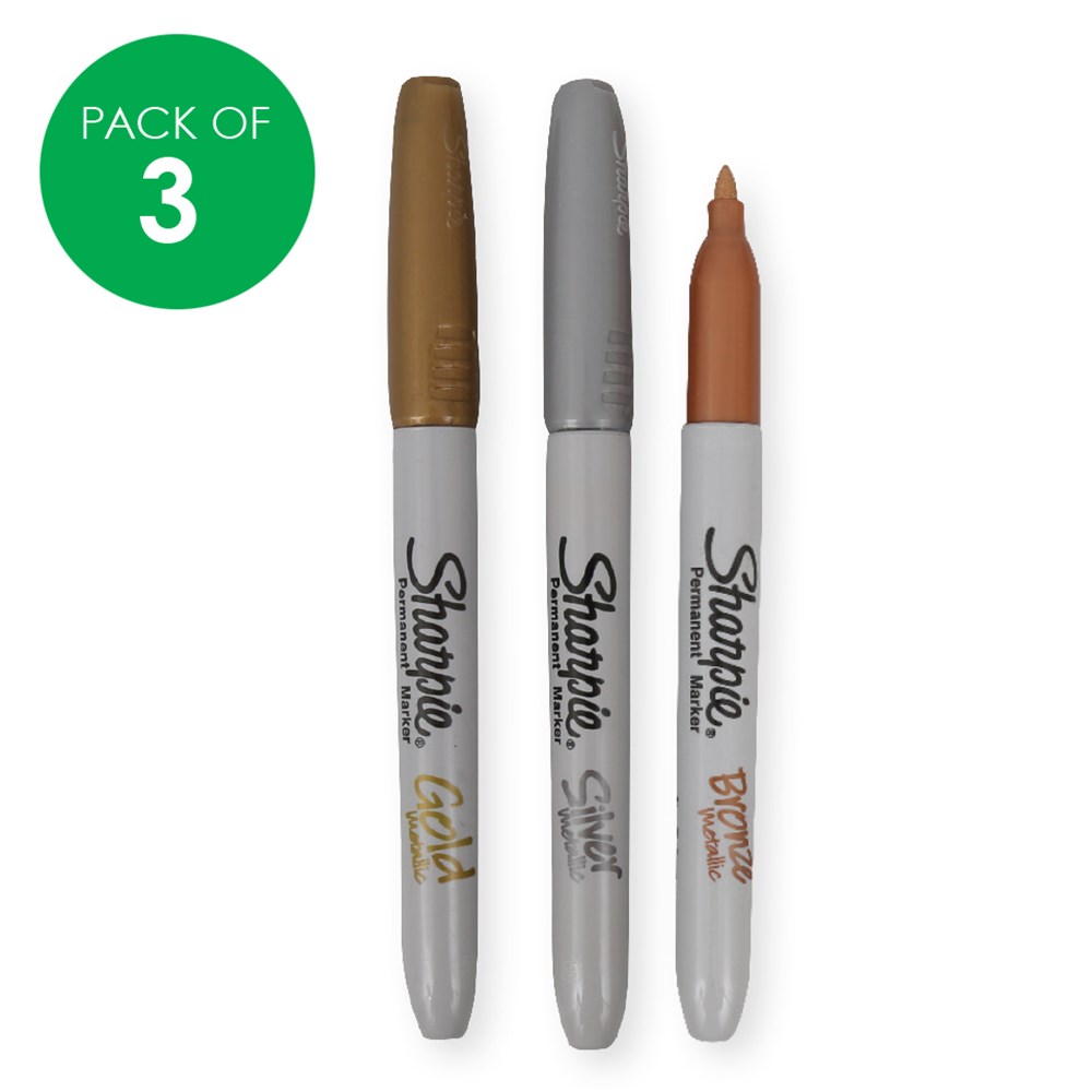 3 assorted colours. Works on both light and dark surfaces. Ideal for use on most surfaces including plastic, metal, wood and paper. Quick drying. Fade and water resistant ink. 1mm tip. Store markers tip down.