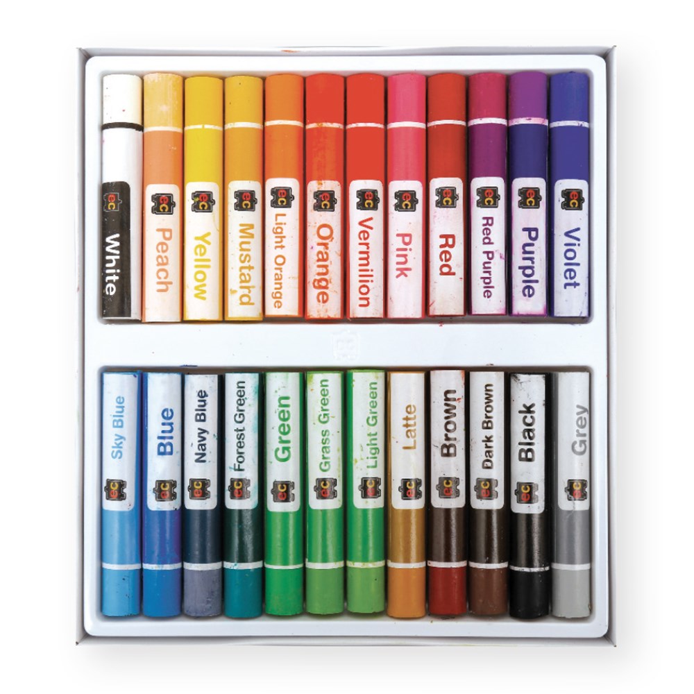 EC jumbo oil pastels in 24 assorted colours. Each oil pastel measures 7 x 1.1cm. Non-toxic. Washable.