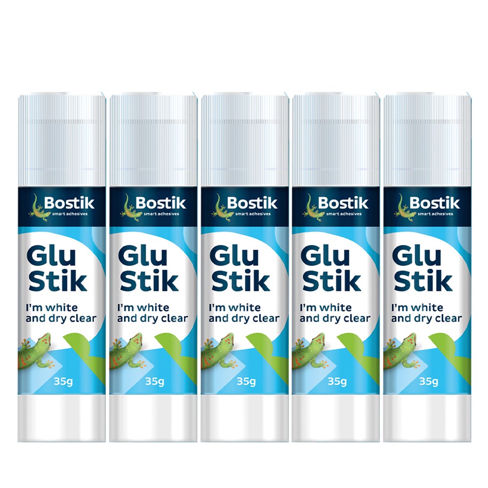 Dries clear. Non-wrinkle, convenient and mess free. Designed to bond paper, cardboard and fabrics. Acid-free. Non-toxic. Each Glu Stik contains 35g.
