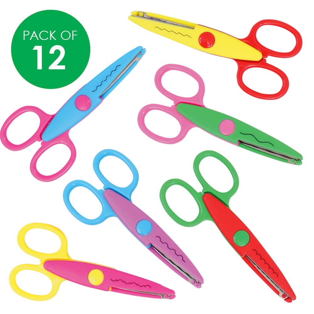 12 Craft Scissors in 6 assorted cutting designs. Use them to create beautiful patterned edges!