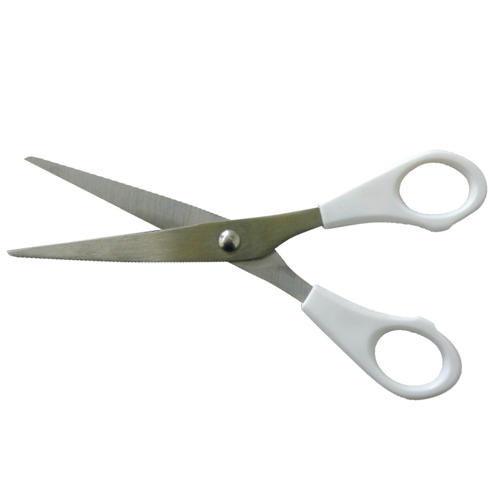 Scissors featuring stainless steel blade. Measures 15cm long.