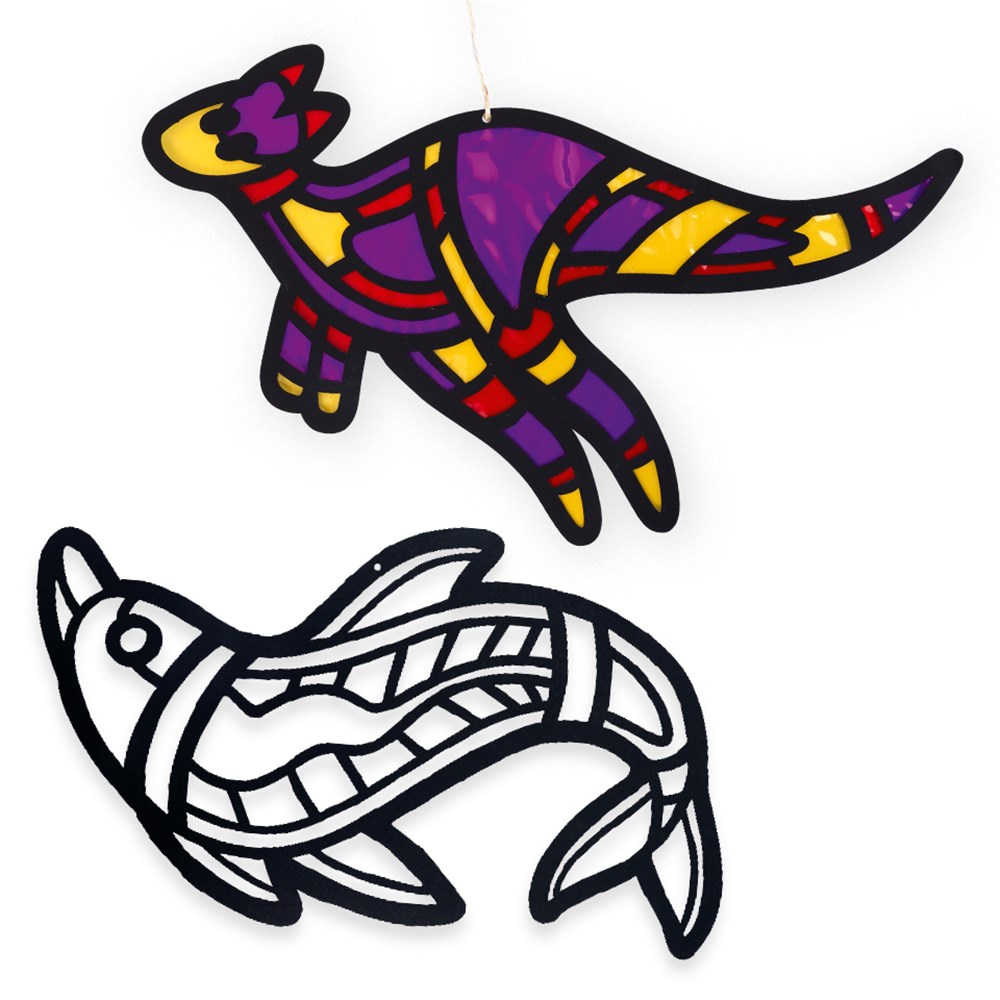 Plain for you to create. Includes a hole for hanging. Ideal for use with cellophane or frosted glass paper (sold separately). Stick onto windows or hang up, then let the light shine through for a beautiful stained glass effect! Kangaroo measures approximately 35.5 x 23.5cm. 300gsm.
