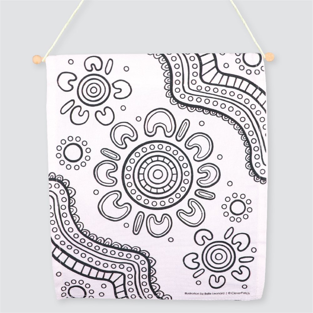 Cotton fabric with black print supplied plain for you to create. Decorate with our CleverPatch Fabric Markers or Fabric Paint. Banner measures 21.5 x 26.5cm (not including hanger).