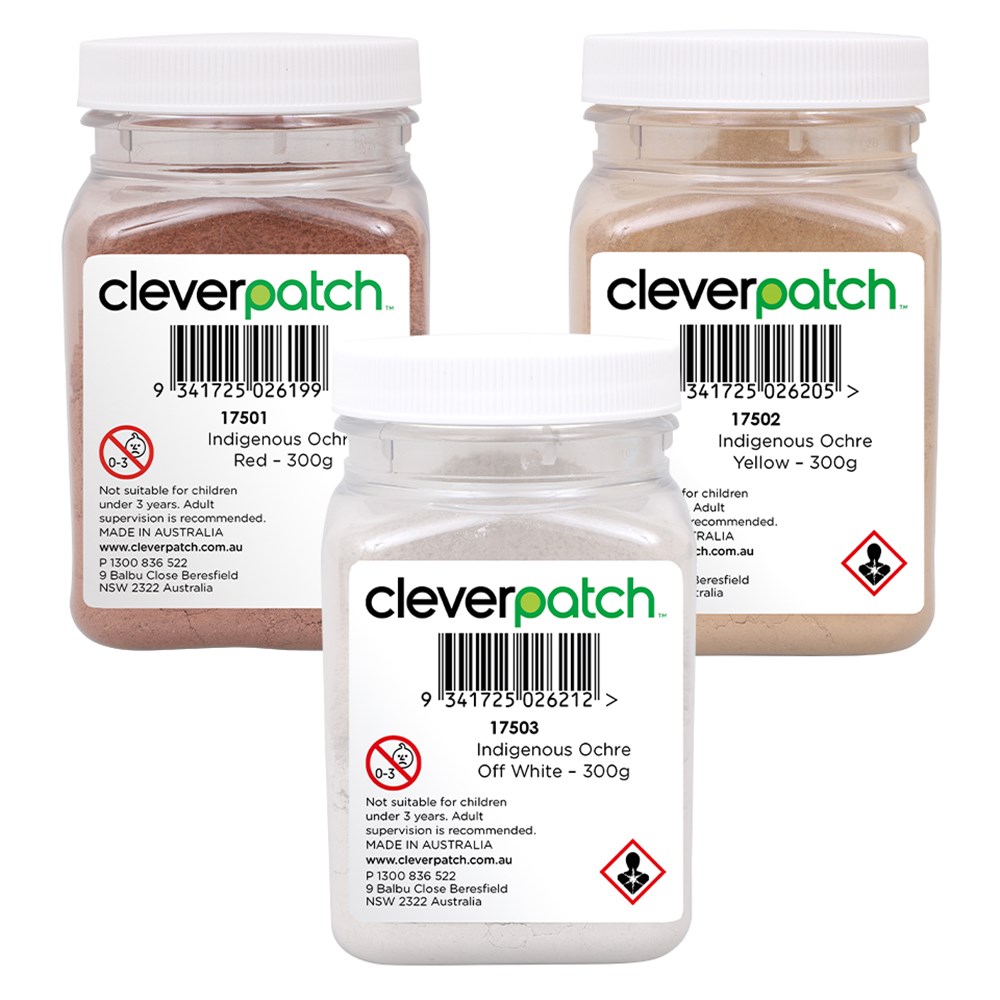 Set of 3 includes a 300g tub of off white, red and yellow 100% natural ochre. To use as a natural paint, mix with water and PVA glue. Colours will vary.