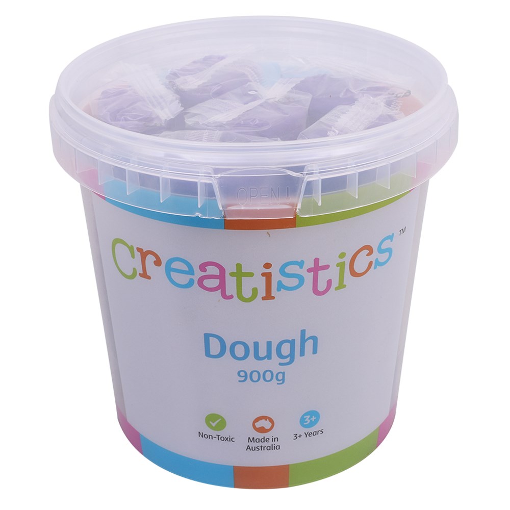 900g of purple dough supplied in a convenient storage tub. Ensure the dough is placed back into the sealed tub to prevent it drying out. Non-toxic. Australian made.