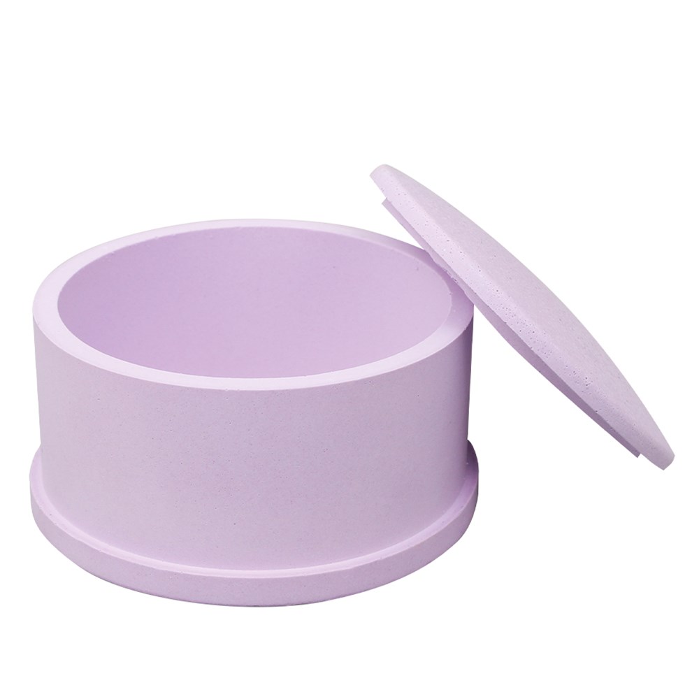 Mould made from flexible silicone. Base measures 8cm in diameter and 3.5cm high. Base of mould holds 45ml and lid holds 25ml.