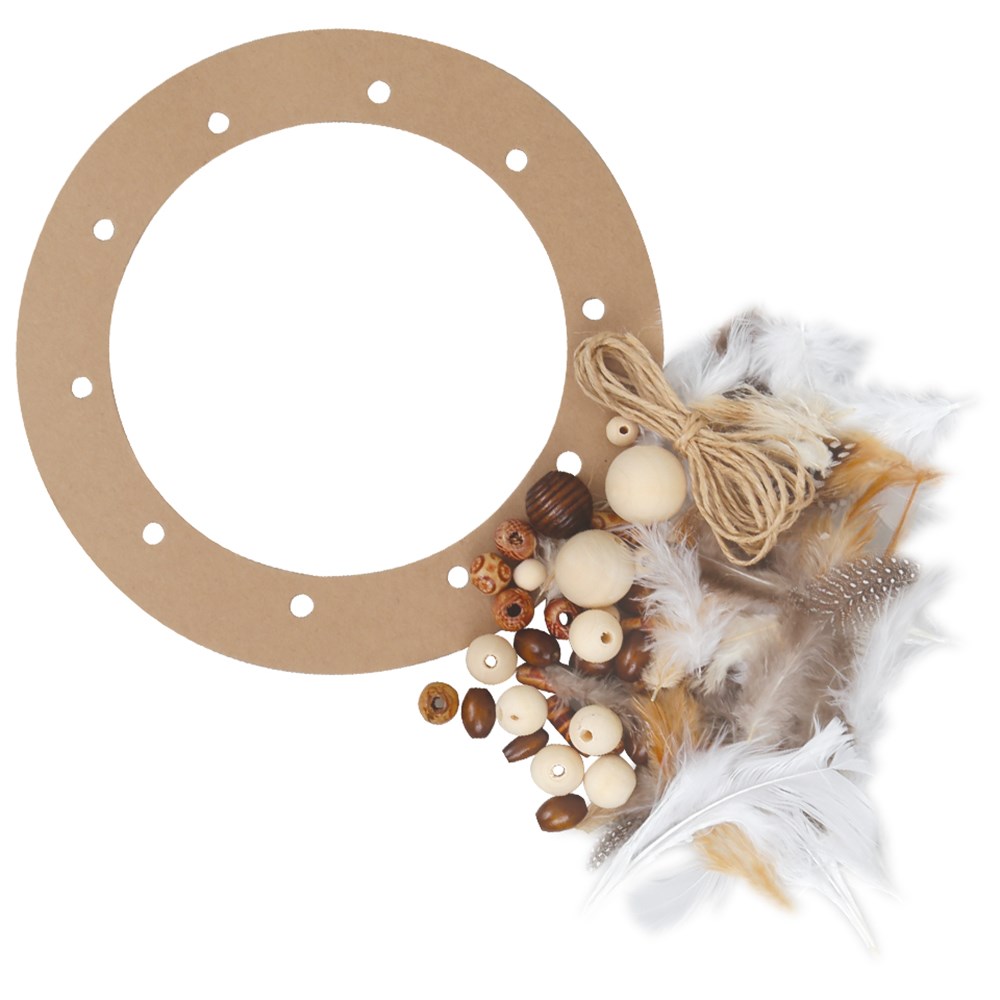 Group pack includes all components required to create and decorate 20 Dream Catchers. Cardboard Weaving Circle measures 20cm in diameter with 280gsm board. PVA glue and scissors are required to complete this activity (sold separately). Contents may vary.