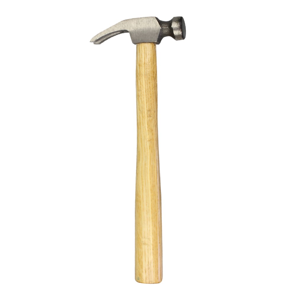 Child size hammer with a wooden handle. Measures approximately 18 x 8cm.