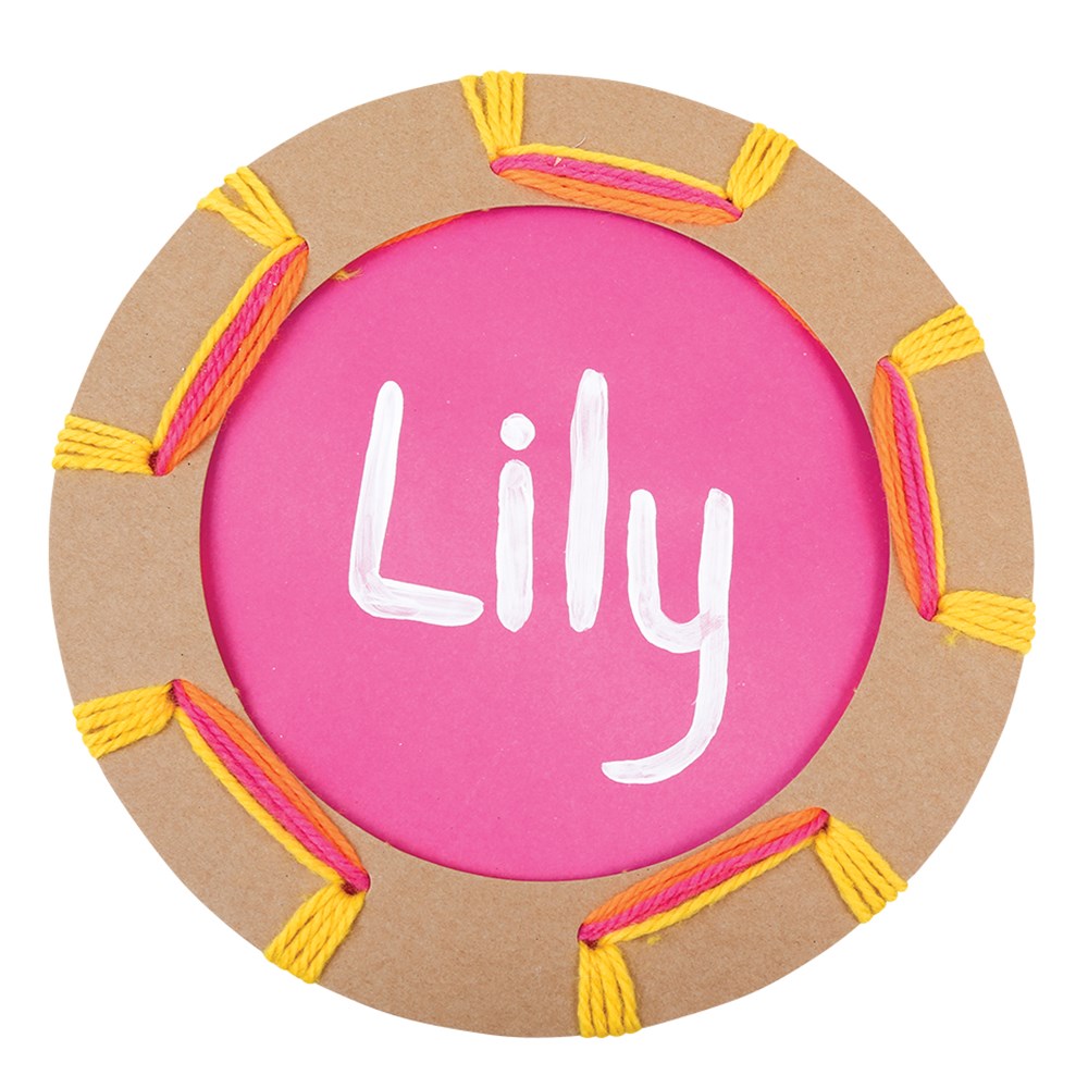 Brown cardboard weaving circles. Plain for you to create. Each circle measures 20cm in diameter. 200gsm board. Accessories not included.
