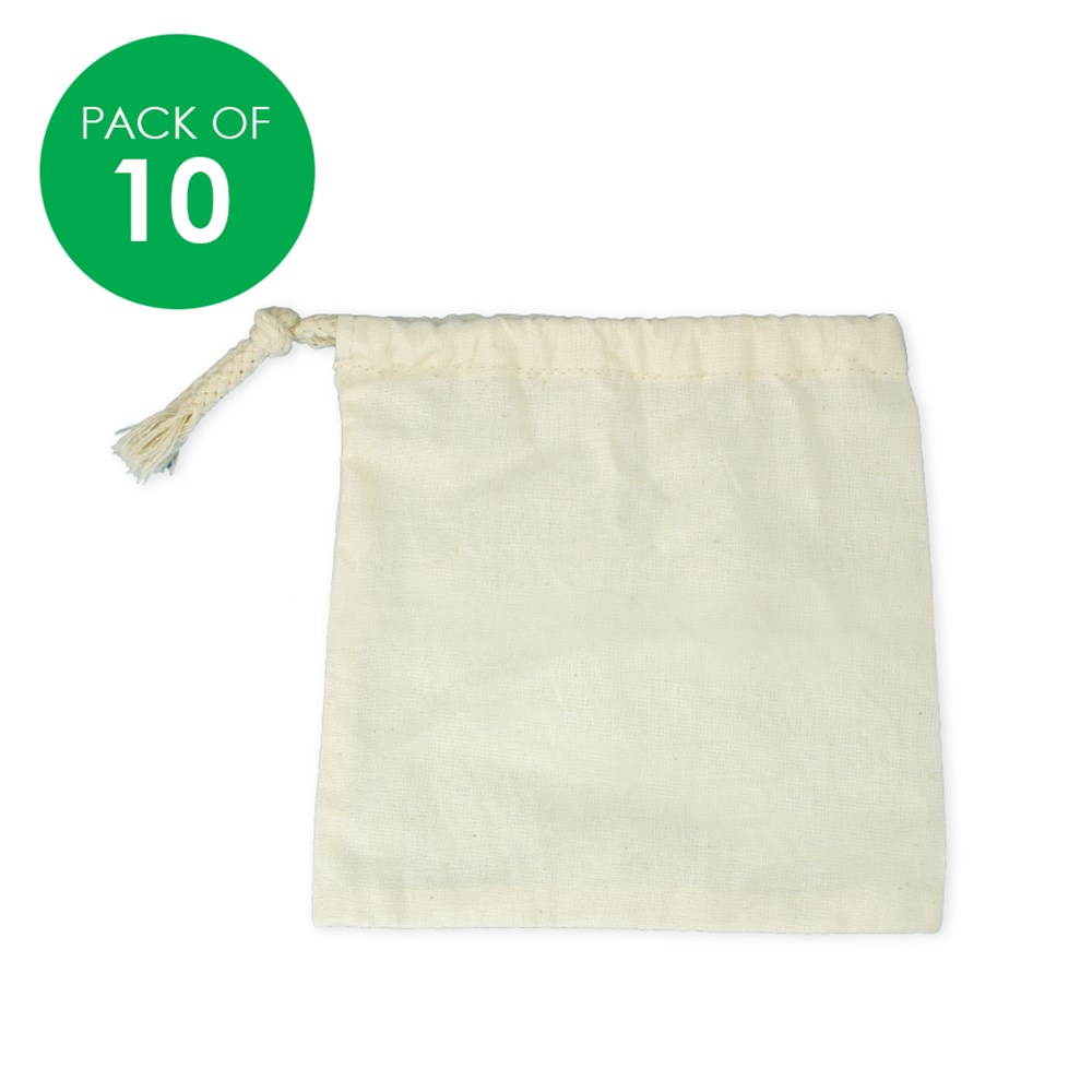 10 cotton bags with drawstring closure. Perfect for your trinkets and small treasures!