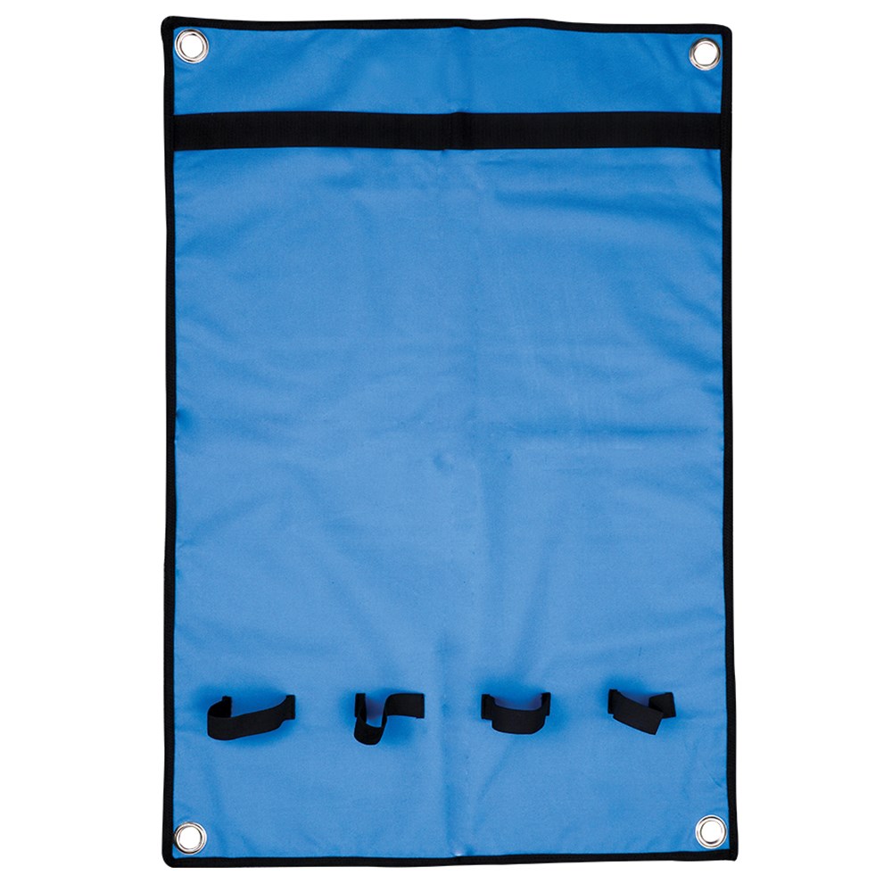 Lightweight, waterproof polyester easel suitable for indoor or outdoor use. Supplied flat-packed, simply fold out and hang up to use. Includes straps for easy hanging and space for 4 paint pots. Ideal for use with pegs or clips.