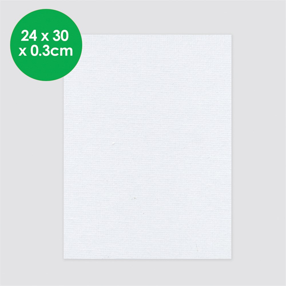 Medium rectangle canvas art board supplied plain for you to create. Measures 24 x 30 x 0.3cm. This solid and sturdy art board is great for kids who love using collage materials on their artworks!