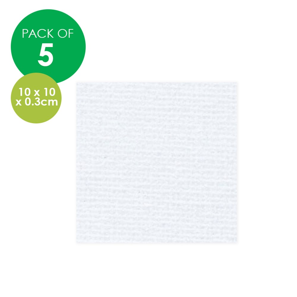 Mini square canvas panel boards supplied plain for you to create. Each canvas art board measures 10 x 10 x 0.3cm. This solid and sturdy art board is great for kids who love using collage materials on their artworks!