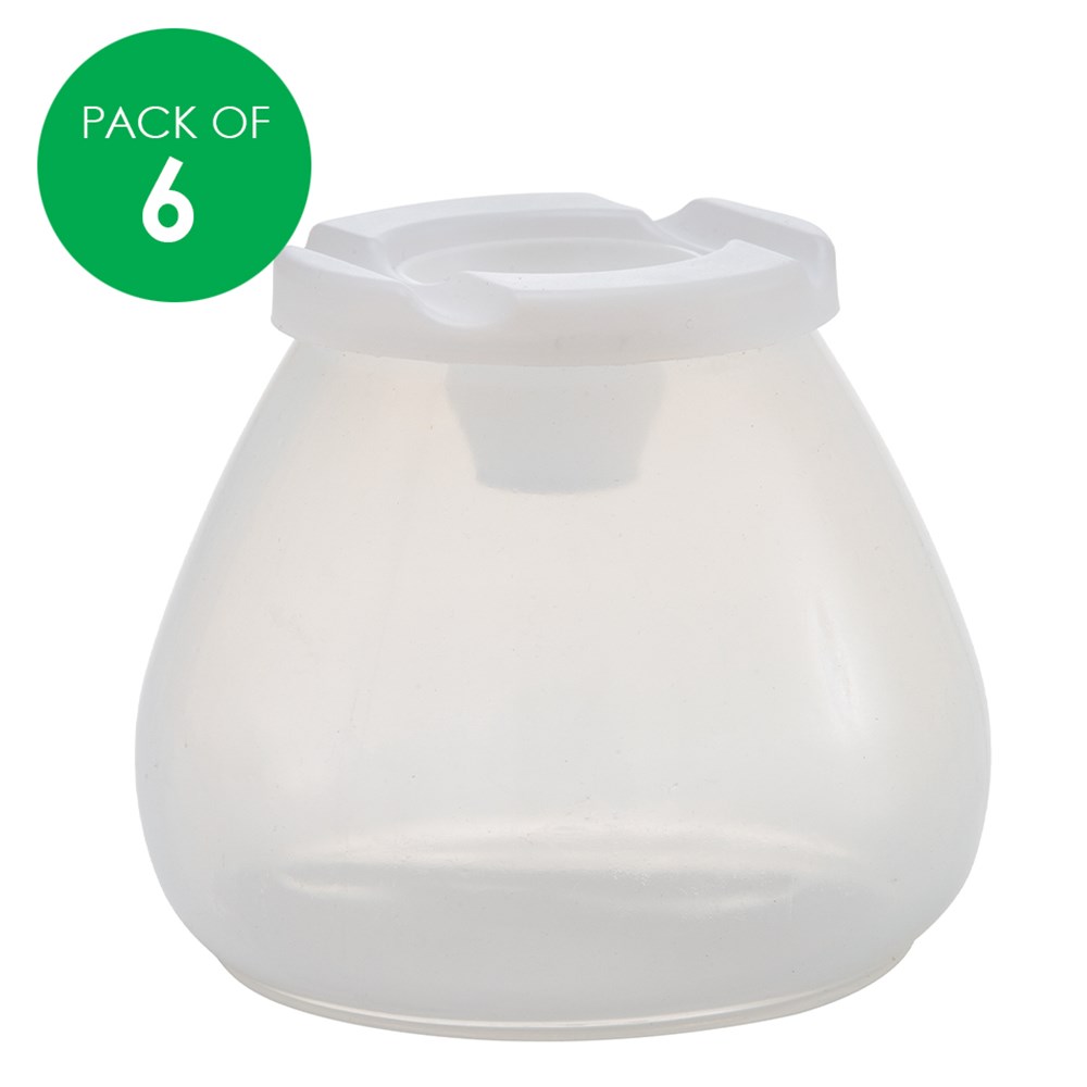 Mess-free paint pots with a unique shape and a stopper lid that prevents spilling.