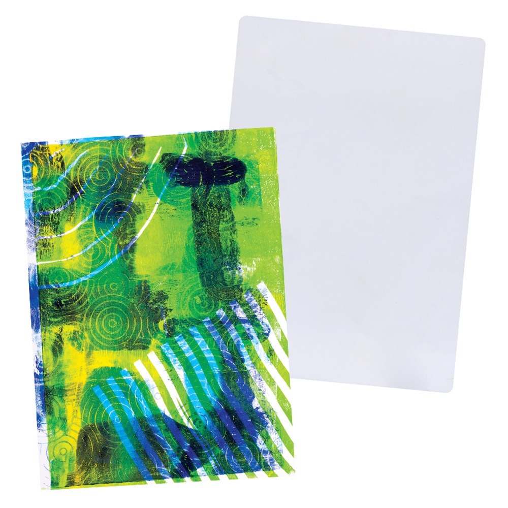Reusable, flexible and durable gel printing plate. Perfect for monoprinting. Use with water-based paints and mediums combined with stencils, collage and textured items to create a unique print. Clean with water to use again and again!