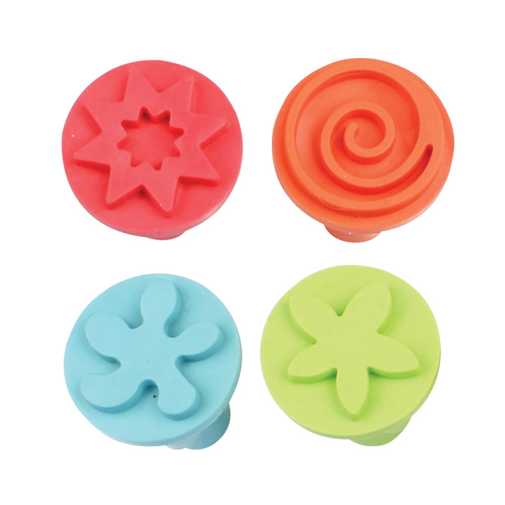 4 assorted designs. Ergonomic design. Each stamper measures 3 x 14cm. Colours may vary.