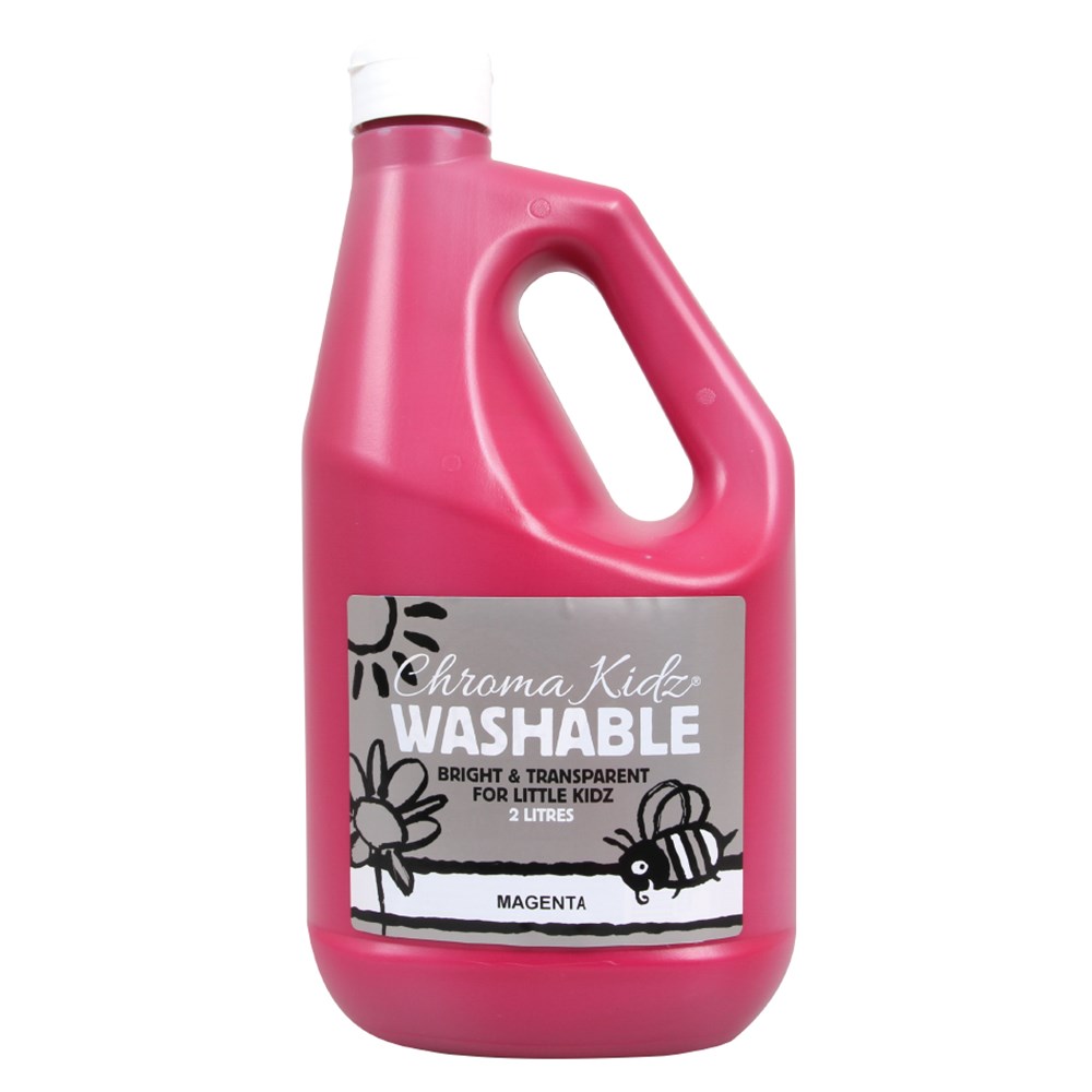 Chroma Kidz magenta paint is a washable paint designed for preschool, infant and primary students. Great for finger painting and painting on paper, cardboard, papier mache and wood. Quick drying. Australian made. Water based. Non-toxic.