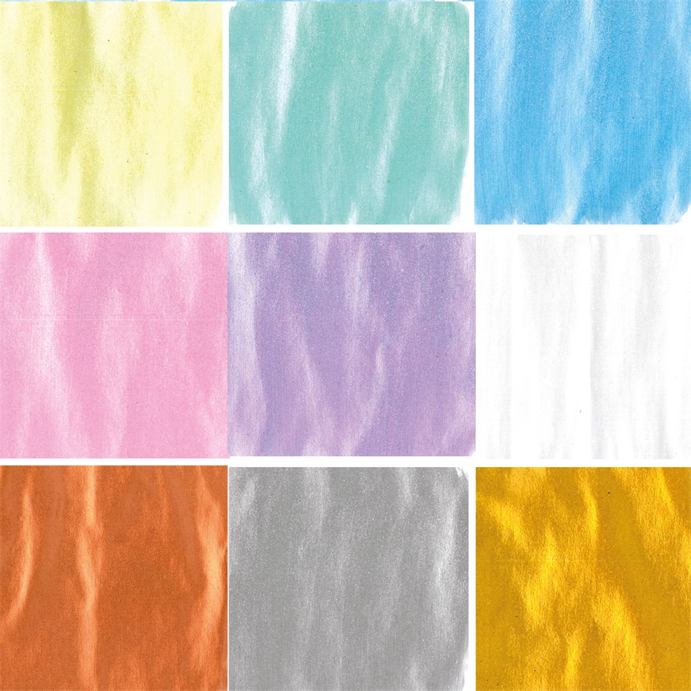 Australian made. Water-based. Non-toxic. Dries quickly with a metallic finish. Multiple coats recommended for best results. Set includes 500ml of each colour (yellow, green, blue, pink, purple, white, copper, silver, gold).