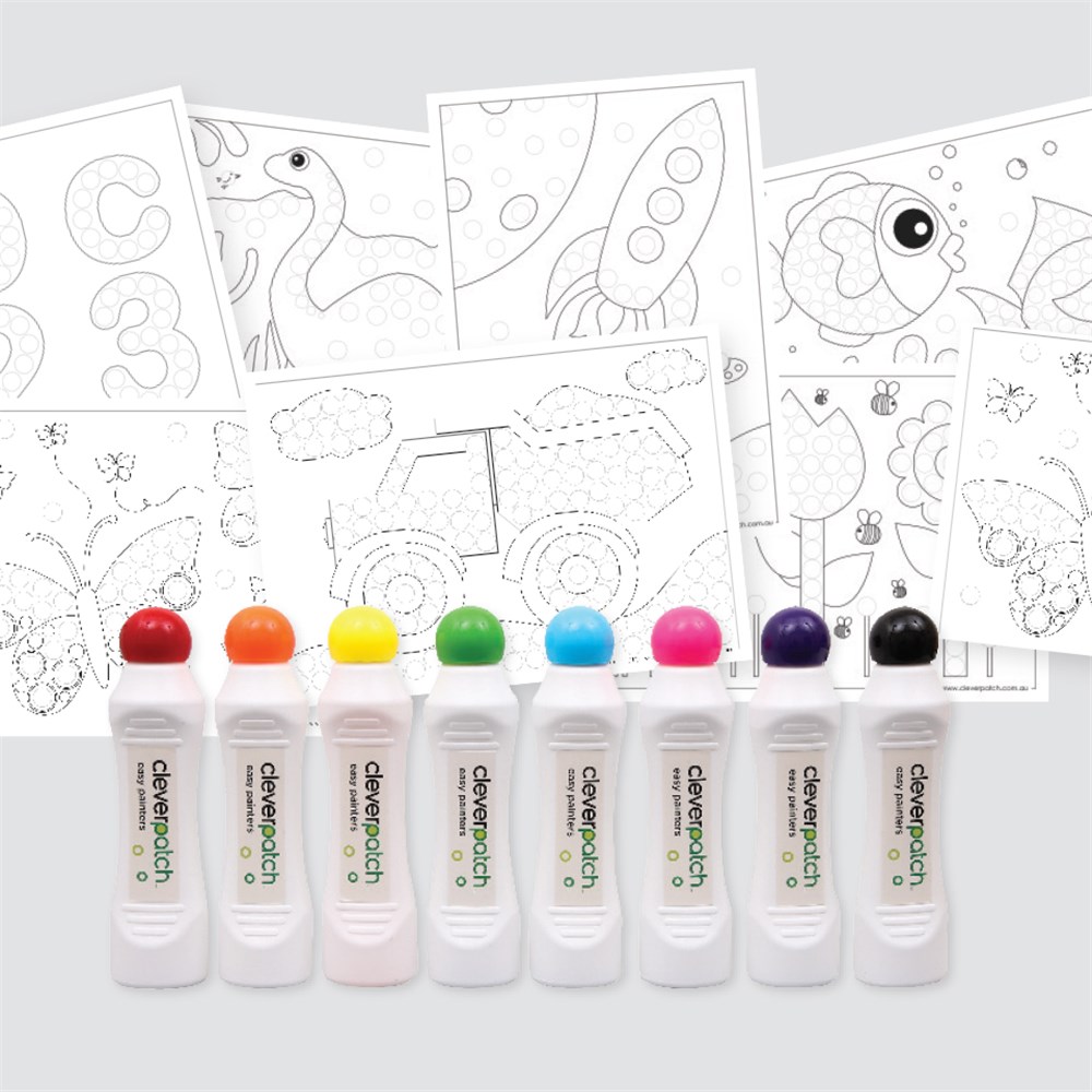 CleverPatch Easy Painters are a simple and mess-free way to paint. The easy grasp bottle is ideal for small hands, special needs or aged care. Simply apply pressure to the tip to release the paint. 8 assorted colours. Washable. Non-toxic. 75ml.