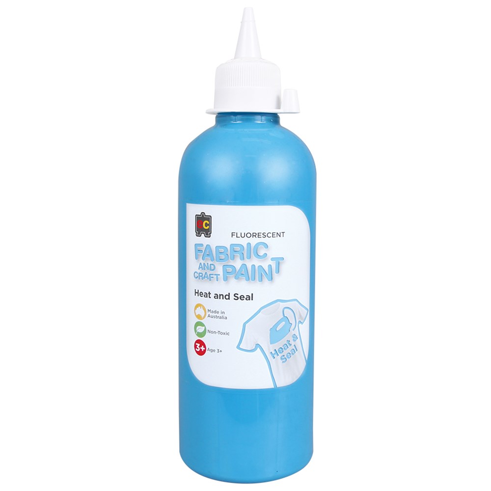 EC fluorescent blue fabric paint is suitable for use on fabric. Allow to dry then heat set with an iron or tumble dry to make the garment colour fast. Water-based. Non-toxic. Australian made.