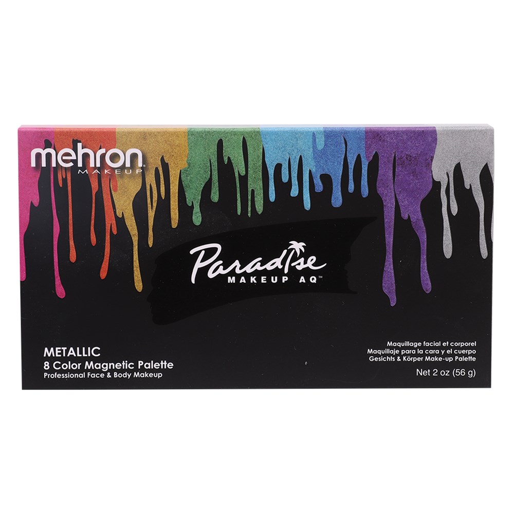 Palette includes 8 assorted metallic, shimmery colours. Each cake measures 3.5cm in diameter and includes 7g. Supplied in a magnetic palette so you can rearrange the colours or customise to your needs! Palette measures 18.5 x 10cm.