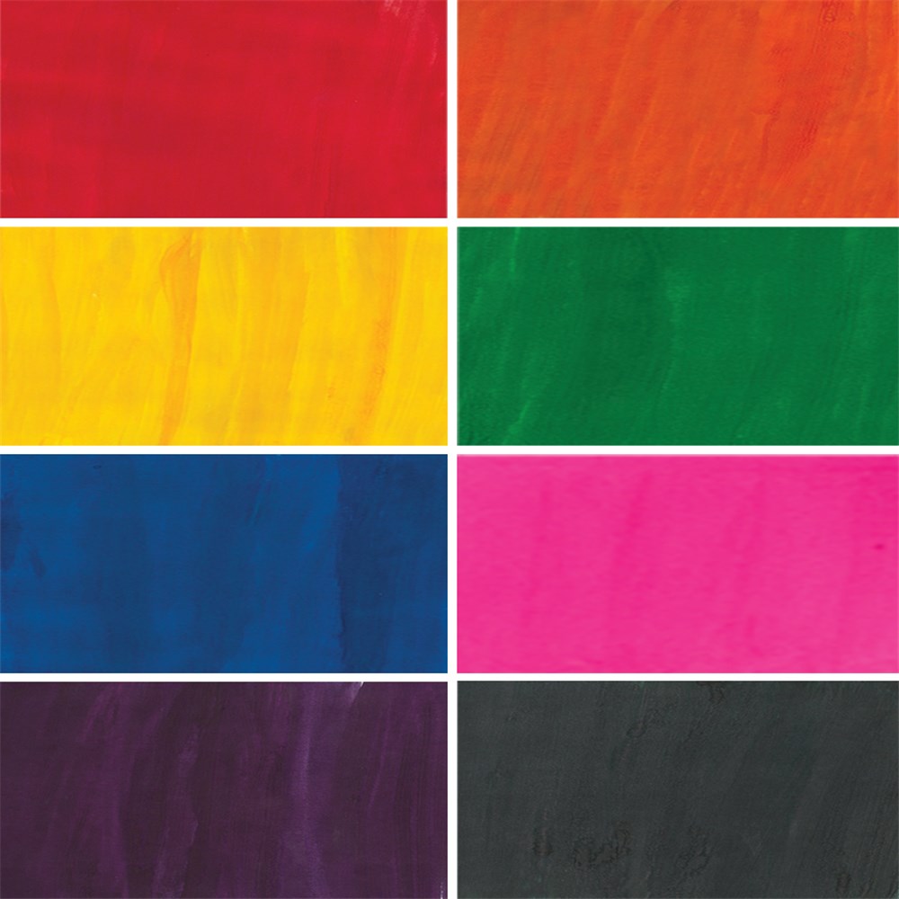 Set of 8 includes 500ml of each colour (red, orange, yellow, green, blue, pink, purple and black).