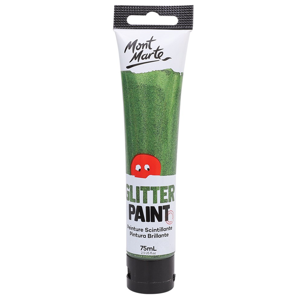 Green glitter paint supplied in an easy to use tube. Water-based. Non-toxic. Clean up with soapy water while wet.