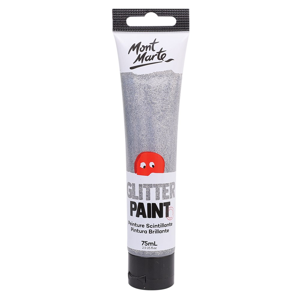 Silver glitter paint supplied in an easy to use tube. Water-based. Non-toxic. Clean up with soapy water while wet.